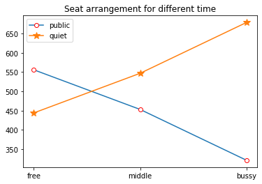 By using the graph, we could clearly see that more quiet seats need to be arranged when students get bussier. This might be a guidance for library to provide different arrangement of seats in different time period.