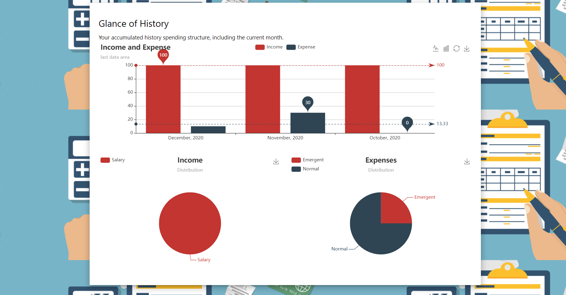 Pages also have a good looking and interactive data representation, like: (taken yearly budgeting tool implemented by me as an example)